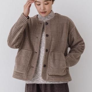 【kermu/ケルム】 チェックフリース ノーカラージャケット