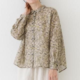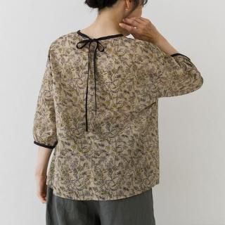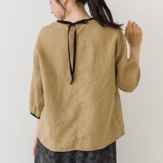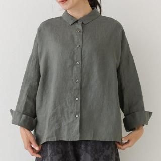【Crea delice/クレアデリス】 暑秋も快適 リネン バンドカラー7分袖ブラウス