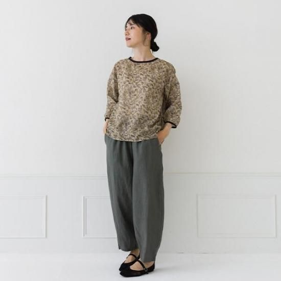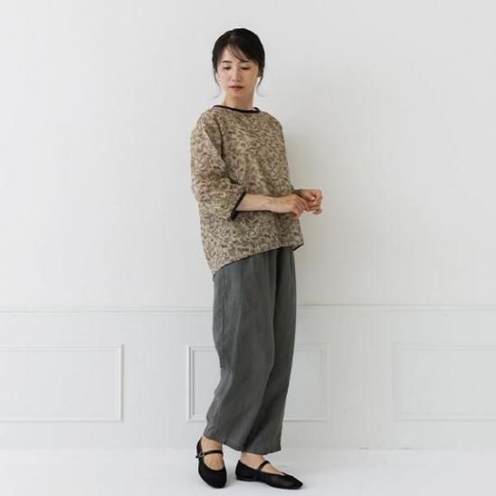 ・綿と麻を混紡した薄手の生地で、軽やかでさらりとした肌触りが心地よい一枚です。