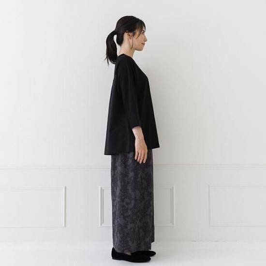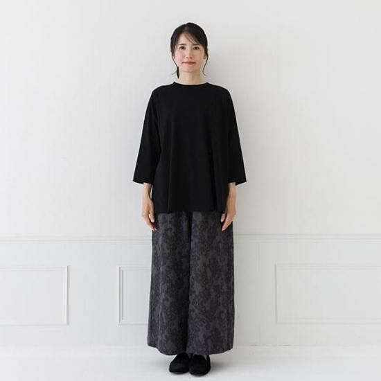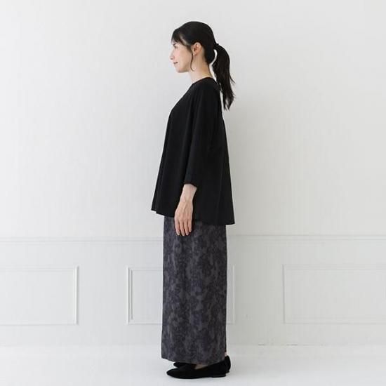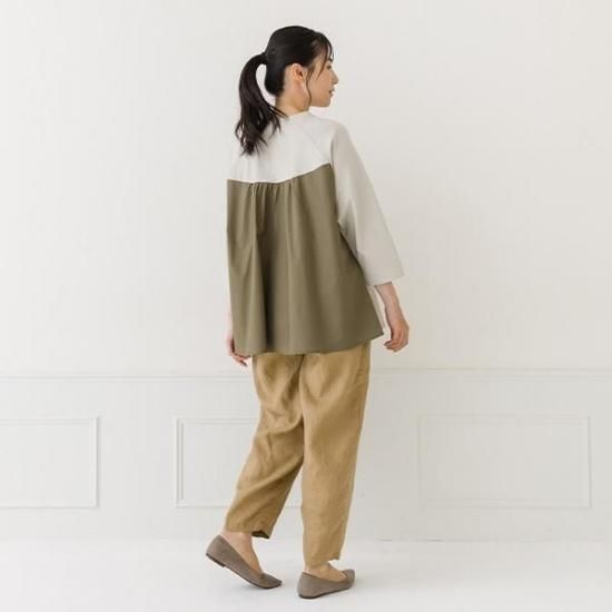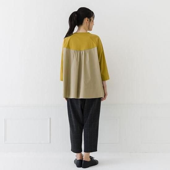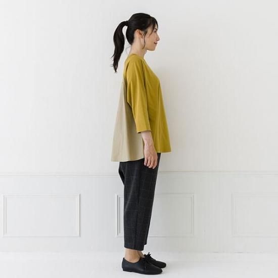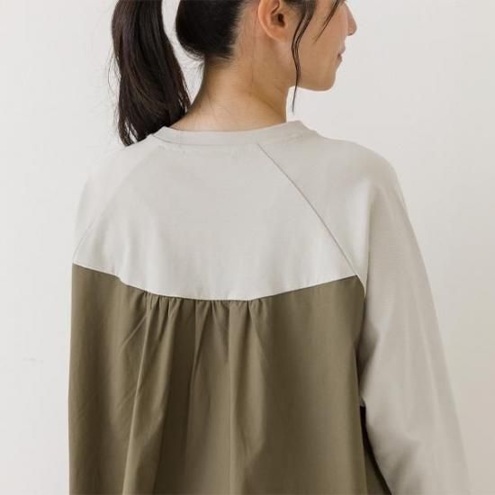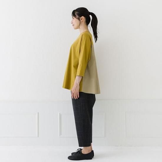 ・前身頃と袖は強撚糸スムース、後身頃は布帛の異素材を組み合わせた贅沢な仕上がりです。