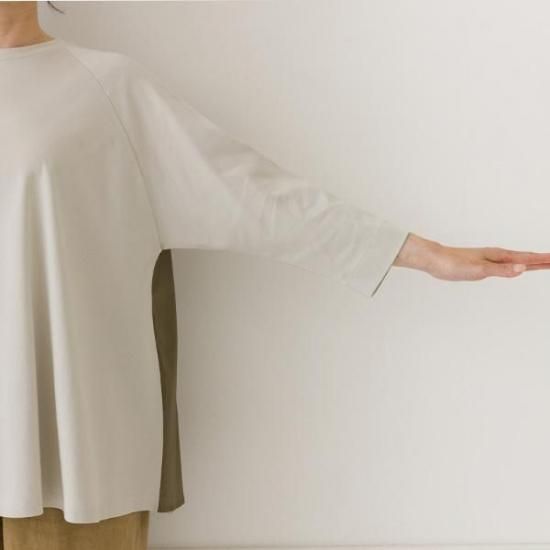 ・肩のラインがないドルマンスリーブで、腕を動かしやすくストレスフリーな着心地です。