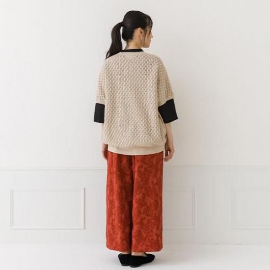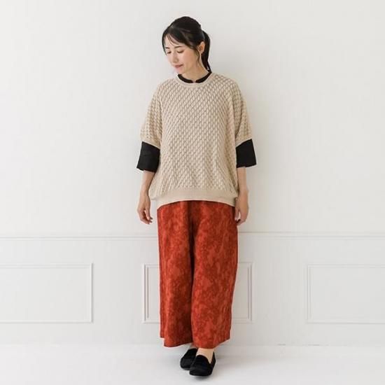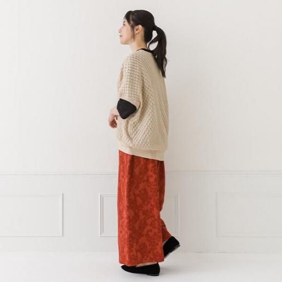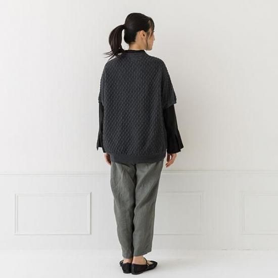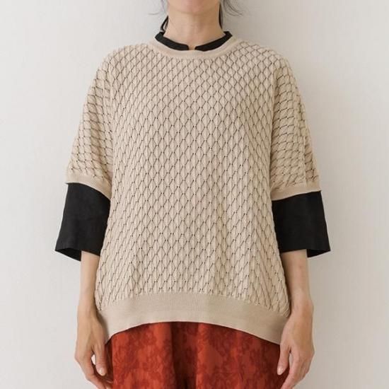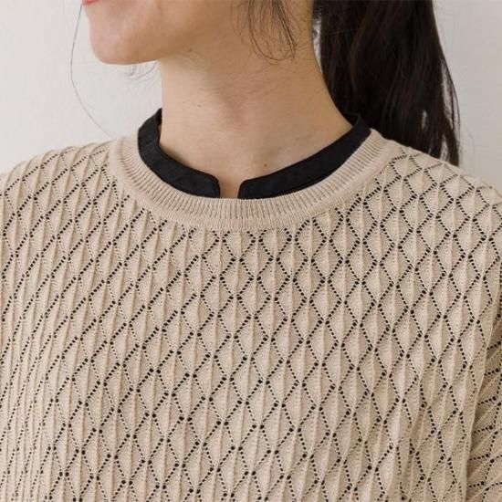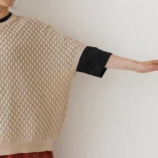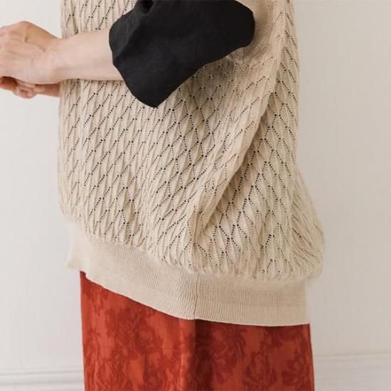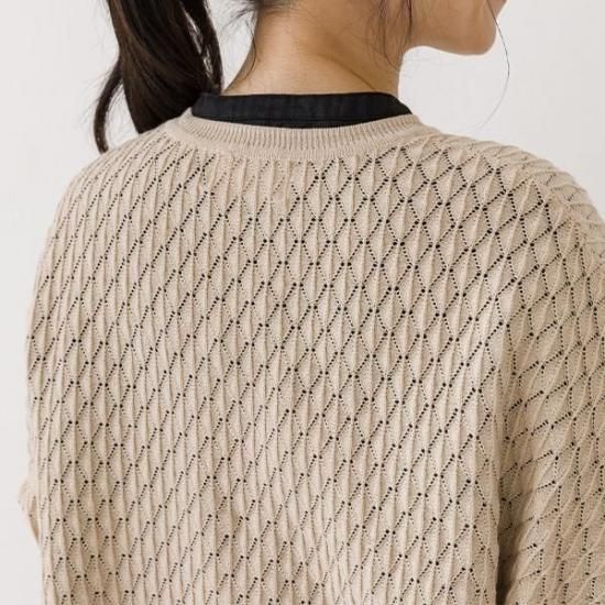・トレンドの透かし編み柄が、着こなしに奥行きと上品な軽やかさをプラスします。
