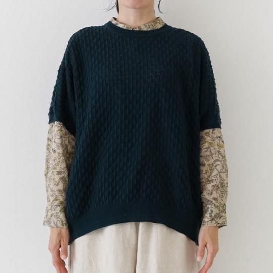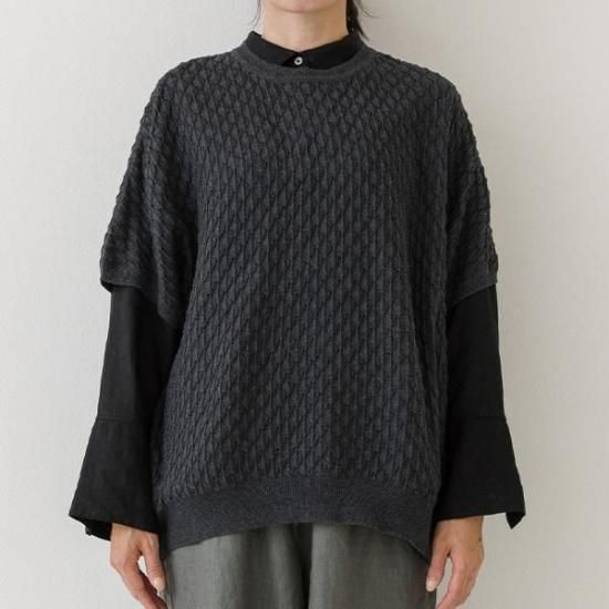 トレンドの透かし編みとコクーンシルエットが魅力。ゆったりとしたワイドな身幅で、