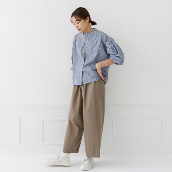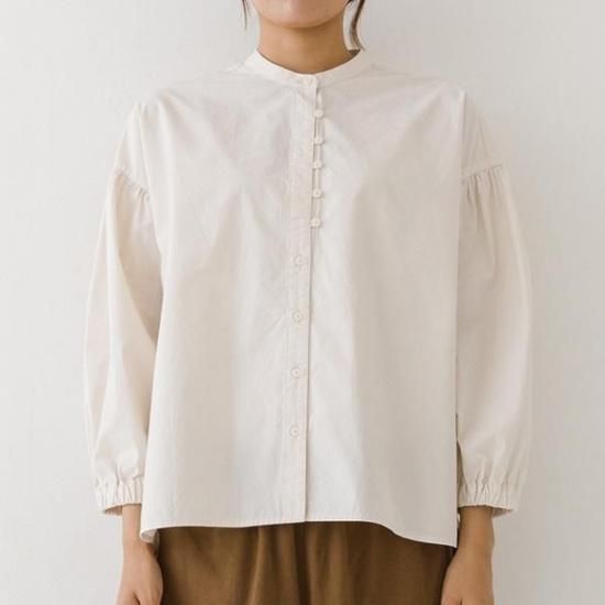 ふんわりとしたボリューム袖が華やかなブラウス。袖をまくると7分袖になり、