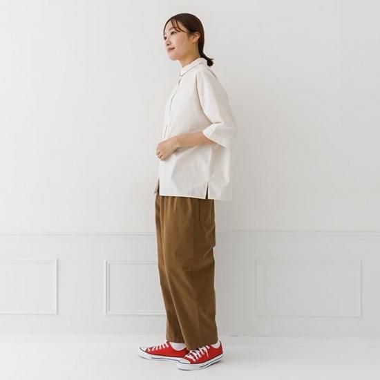 ・ナチュラルなシワ感と柔らかな風合いが魅力のコットンワッシャー素材。