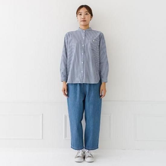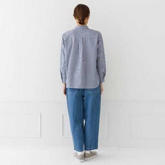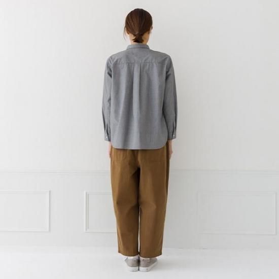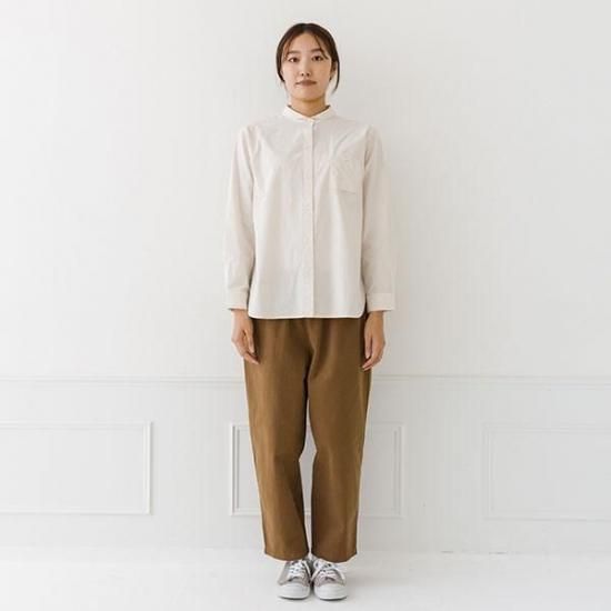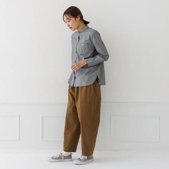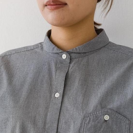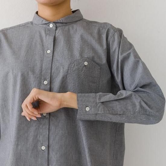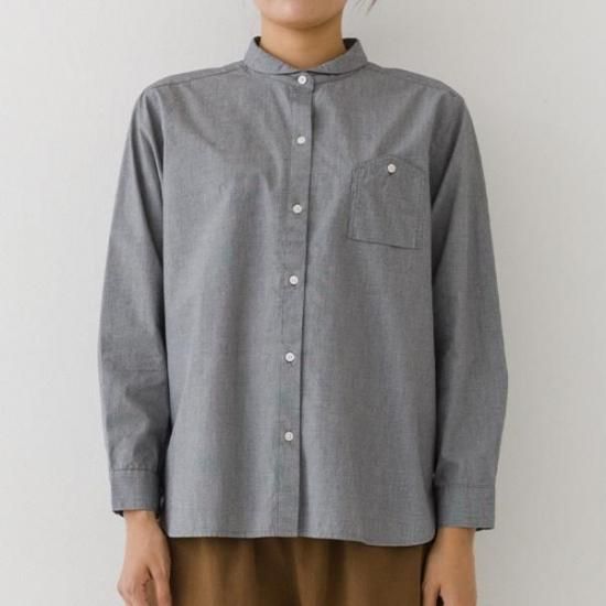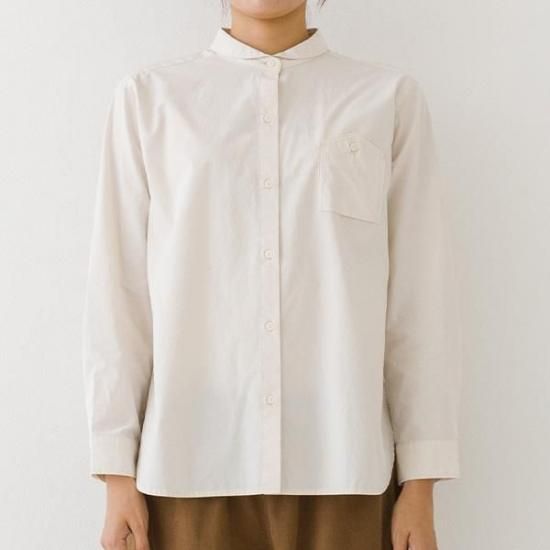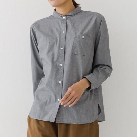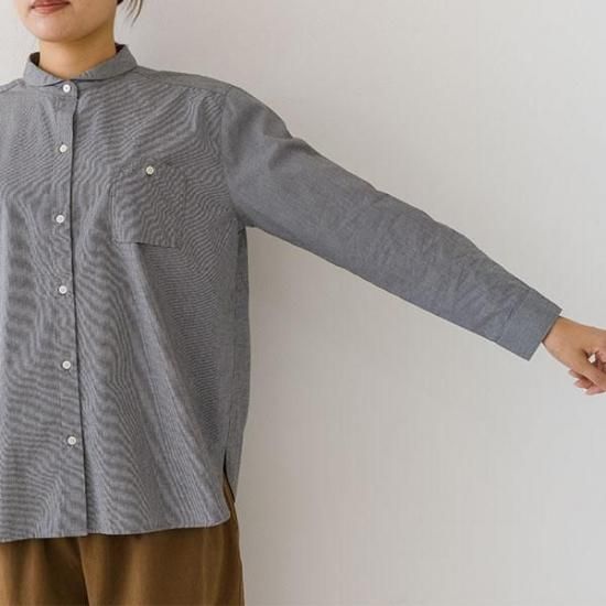 ・胸ポケットがアクセントになるレギュラーシャツ。襟付きで上品な印象です。