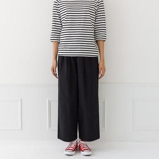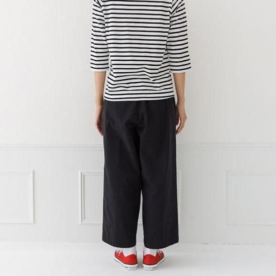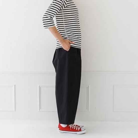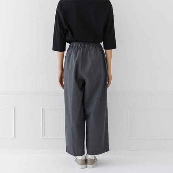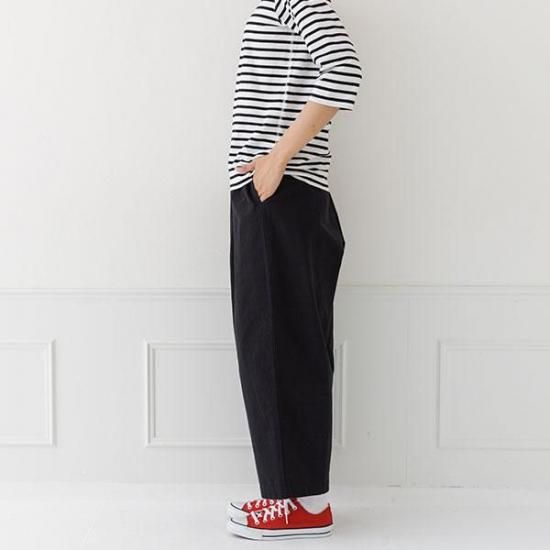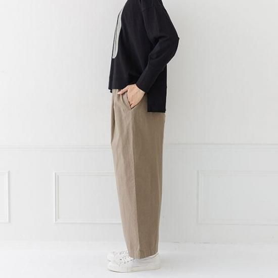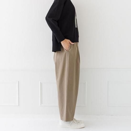 軽やかなコットンチノ素材を使用した、タック入りのワイドパンツ。ウエストは総ゴムで