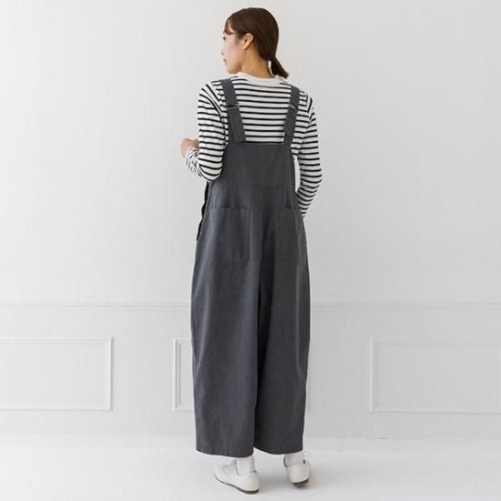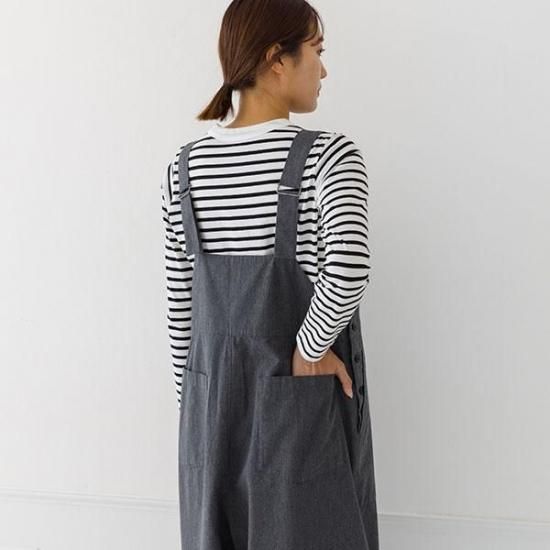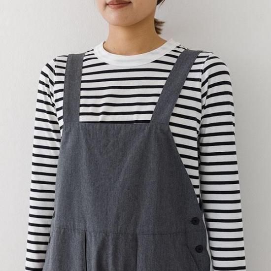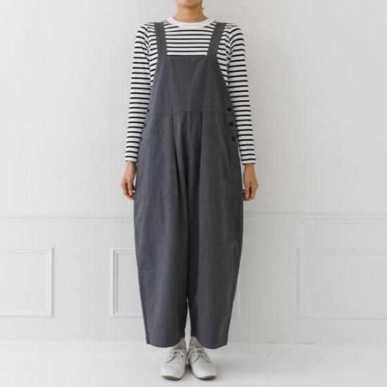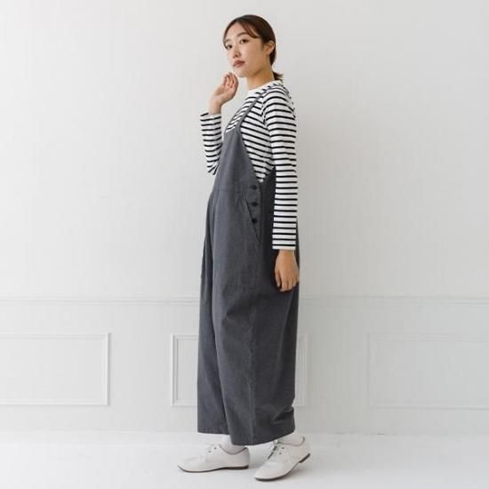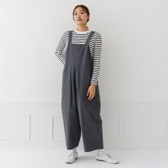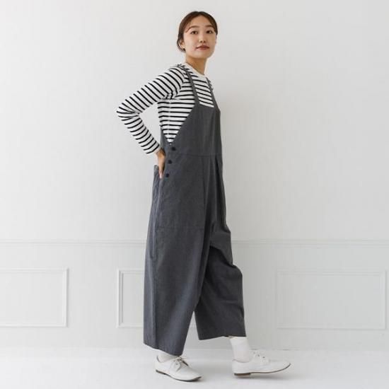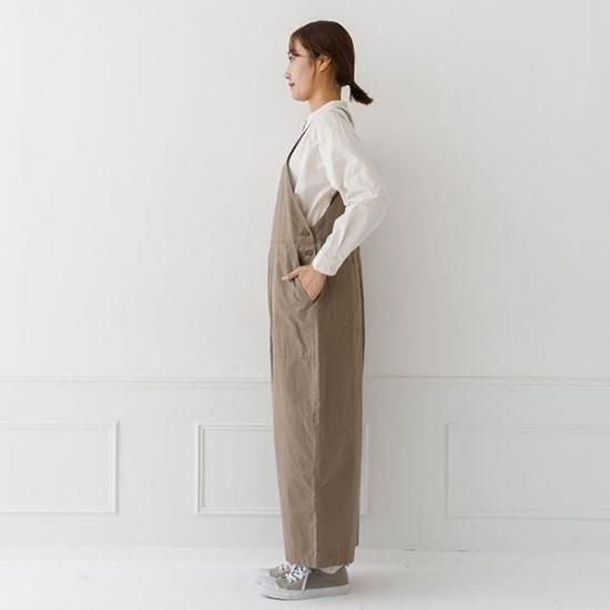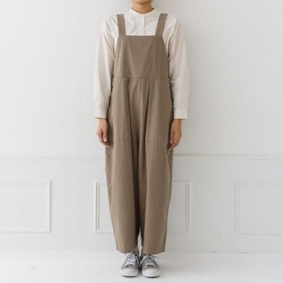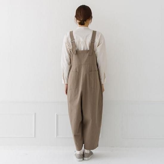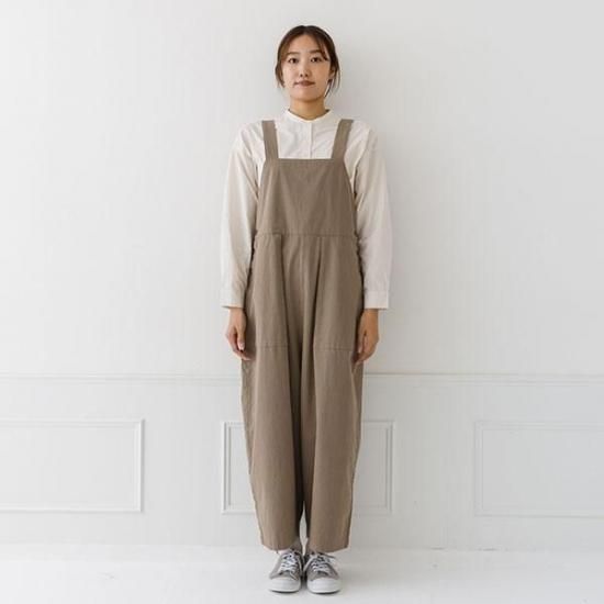 軽やかなコットンチノ素材を使用した、大人カジュアルなサロペットパンツ。