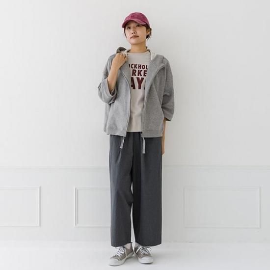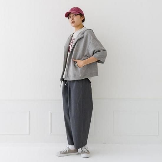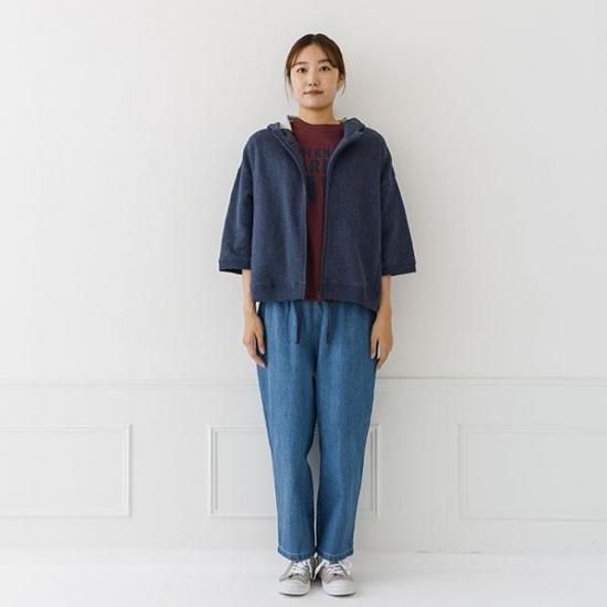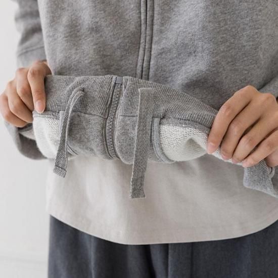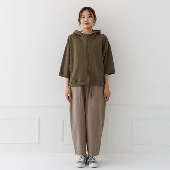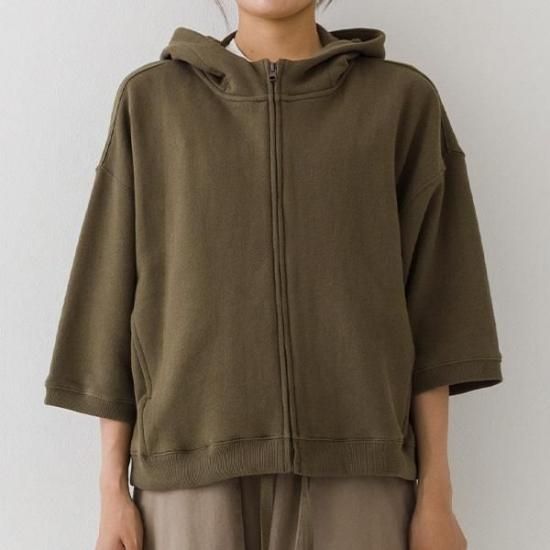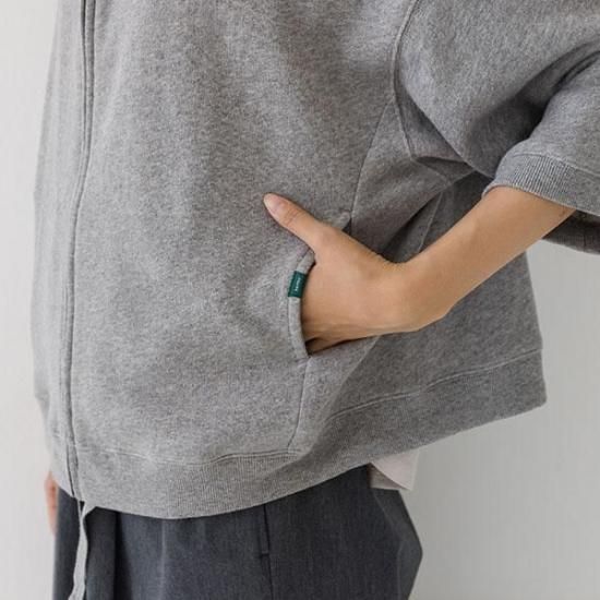 軽くて柔らかなガーゼ裏毛素材のジップパーカー。ゆったりとしたワイドなシルエットと