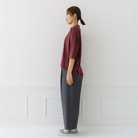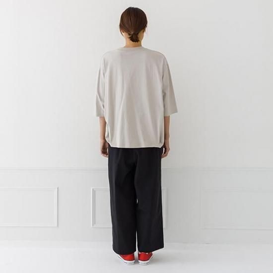 ・ボトムスもワイドなシルエットのパンツを合わせ、上下でゆったりとした