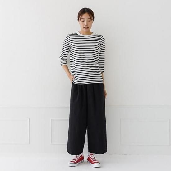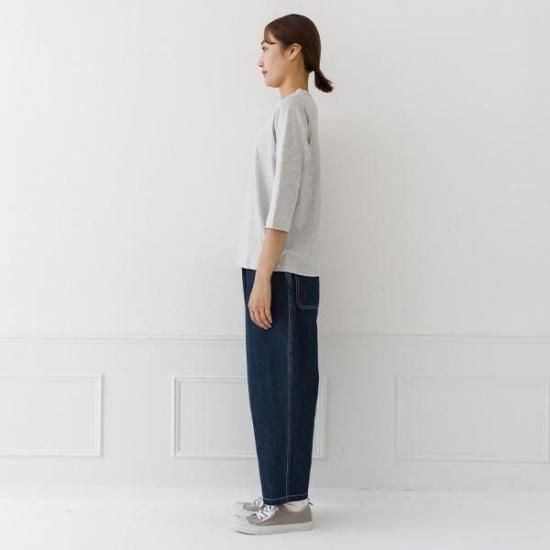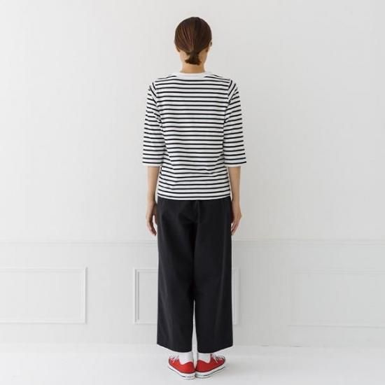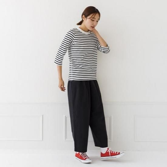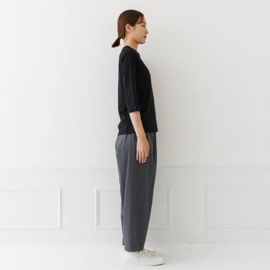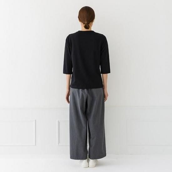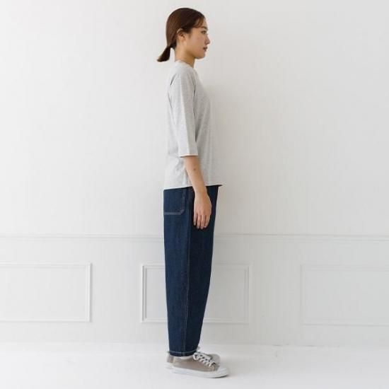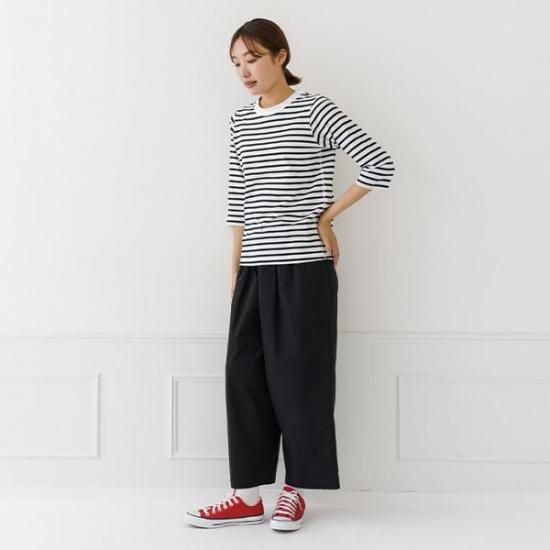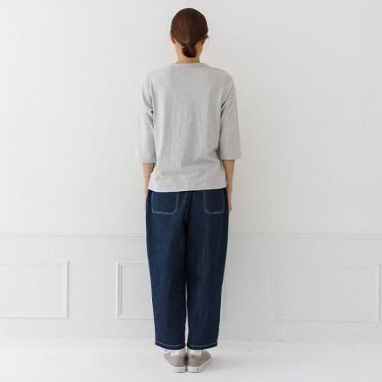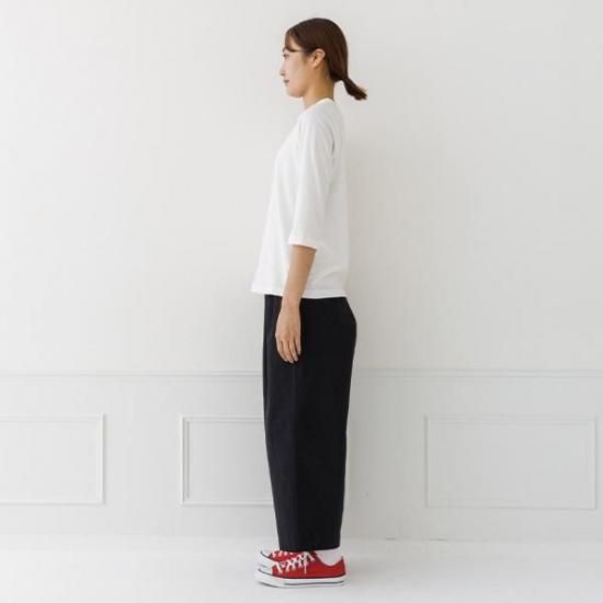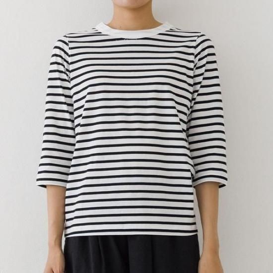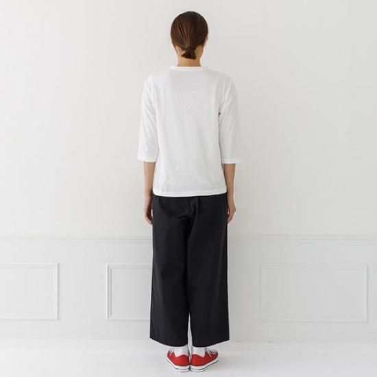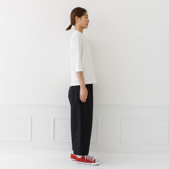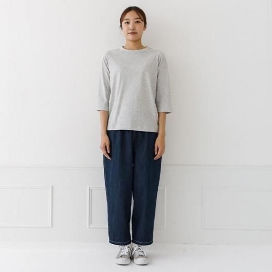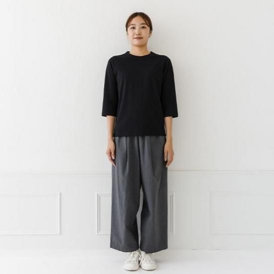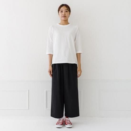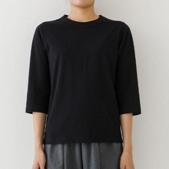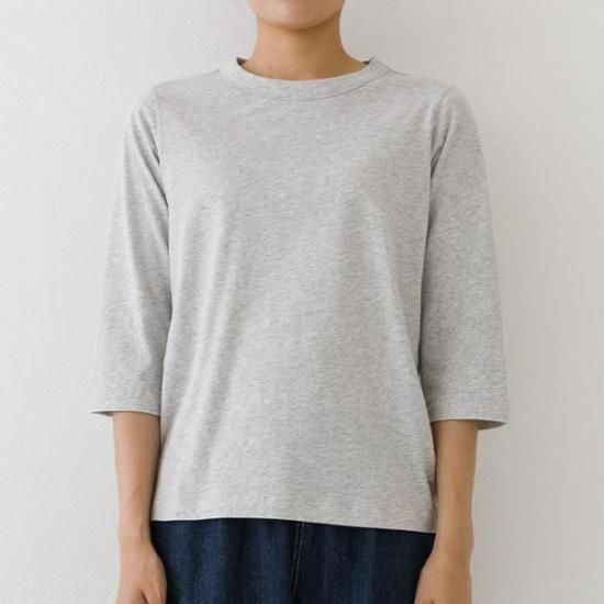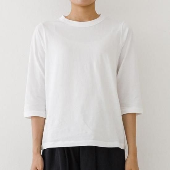 肌に優しいオーガニックコットン天竺素材を使用した、シンプルな7分袖Tシャツ。