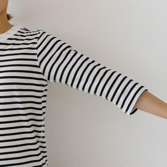・7分袖で手首が華奢に見え、一枚でもサマになるデザインです。