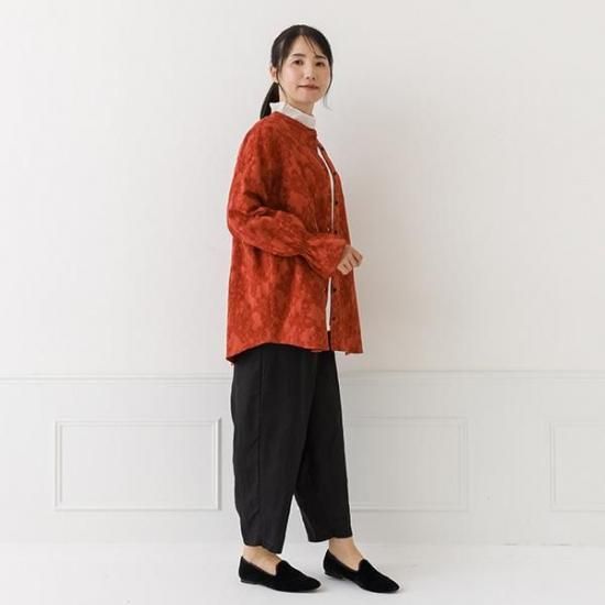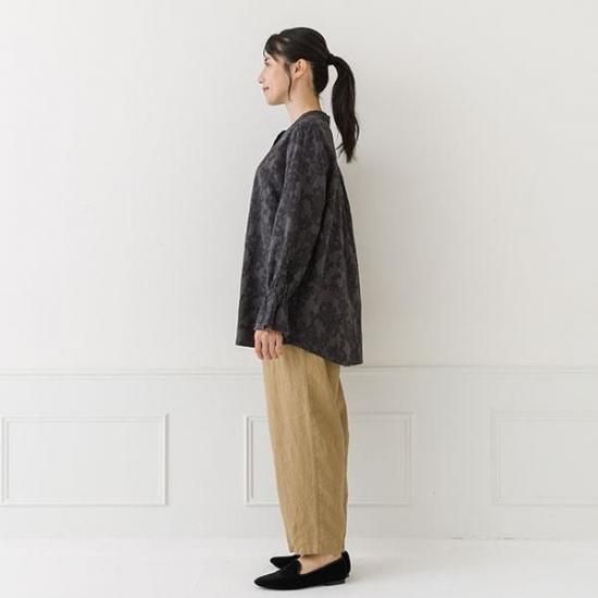 ・細身のパンツやレギンスと合わせると、ブラウスのシルエットが引き立ちます。