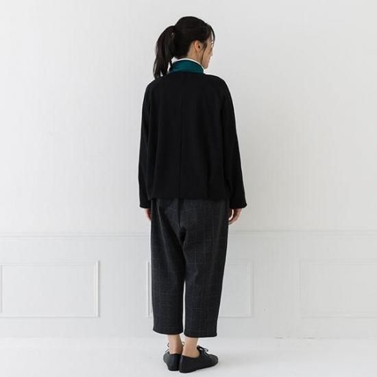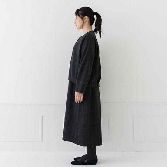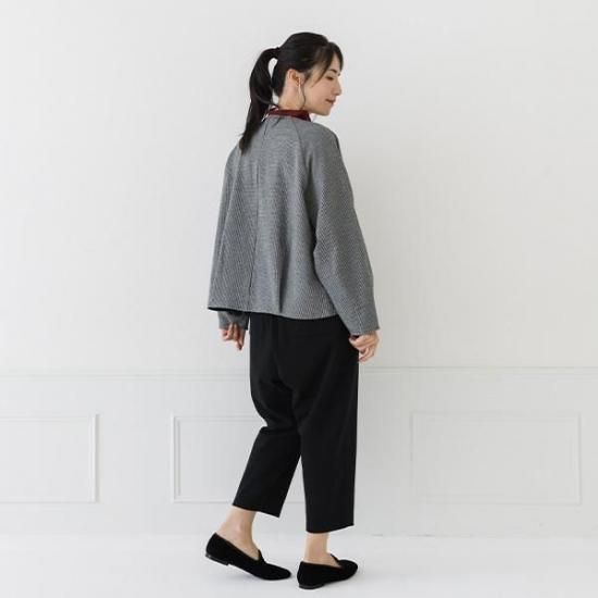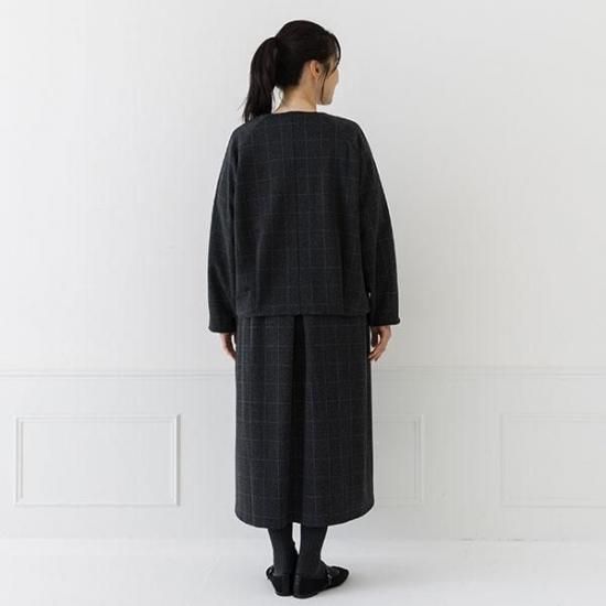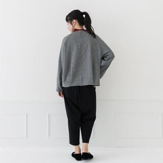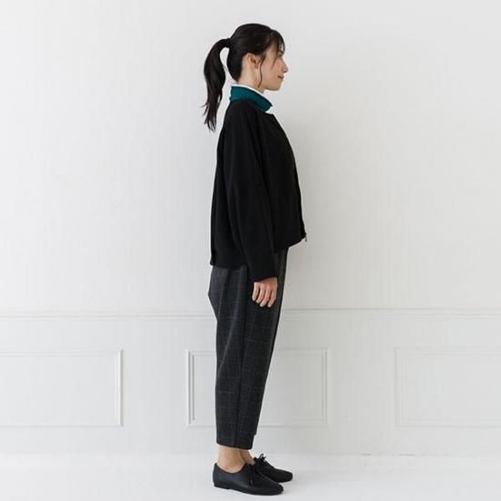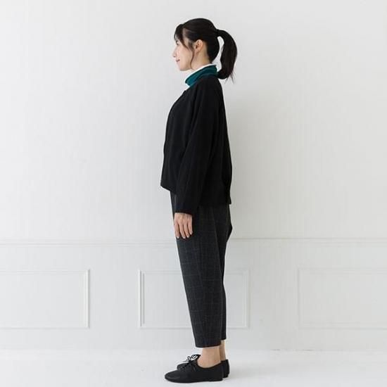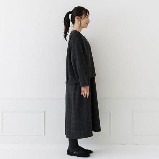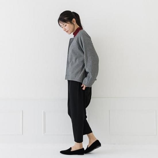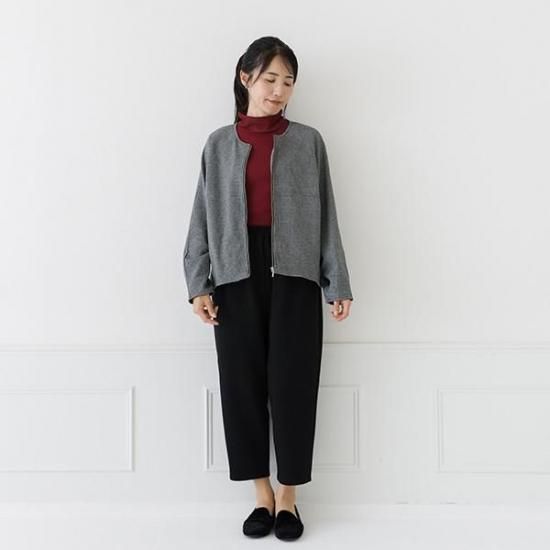 ・短めの着丈は、スカートやワイドパンツとバランス良く合わせられます。