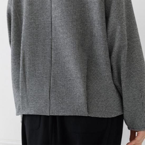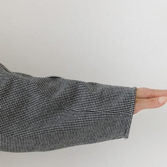 ノーカラーと短め丈、ボリューム袖が、女性らしさと旬のバランスを両立します。