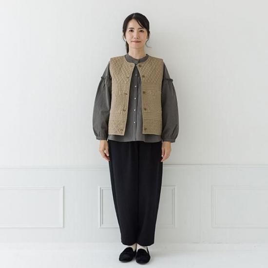 ・柔らかな質感の薄手キルティング生地は、カジュアルになりすぎず上品な印象です。