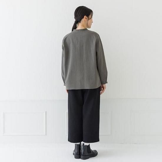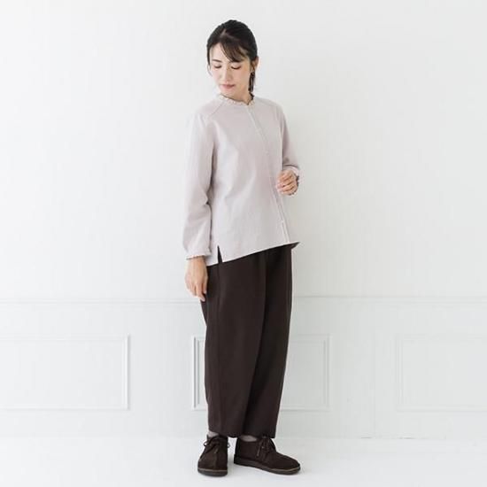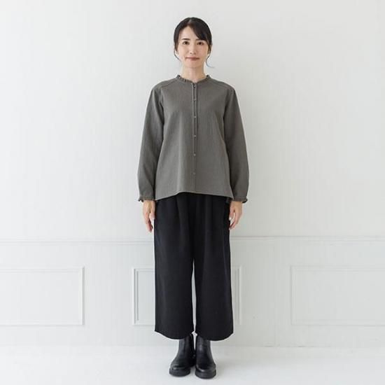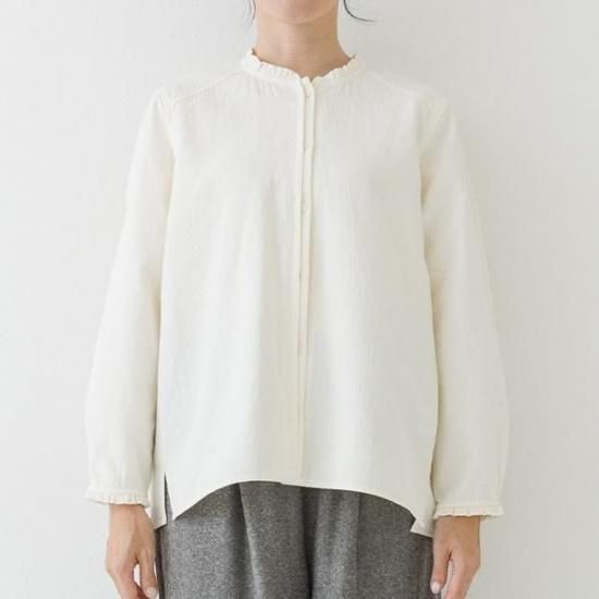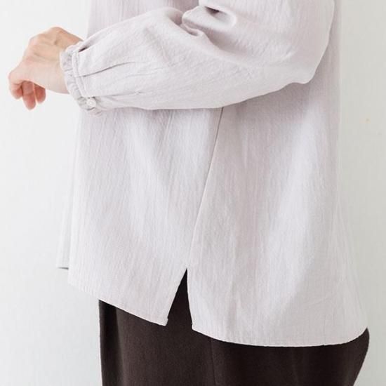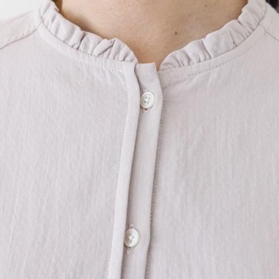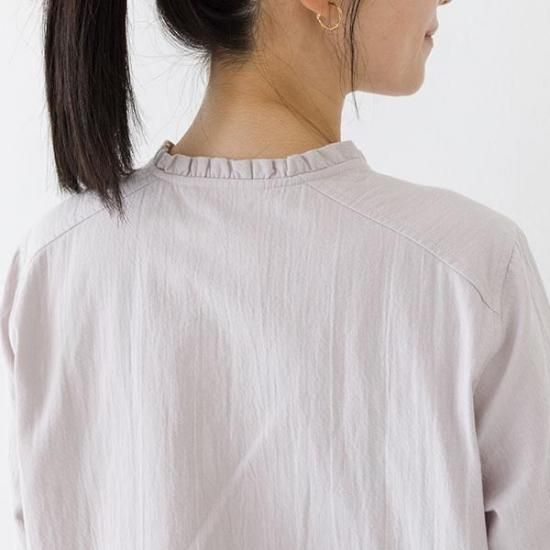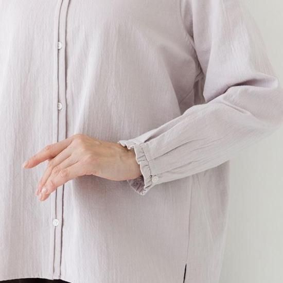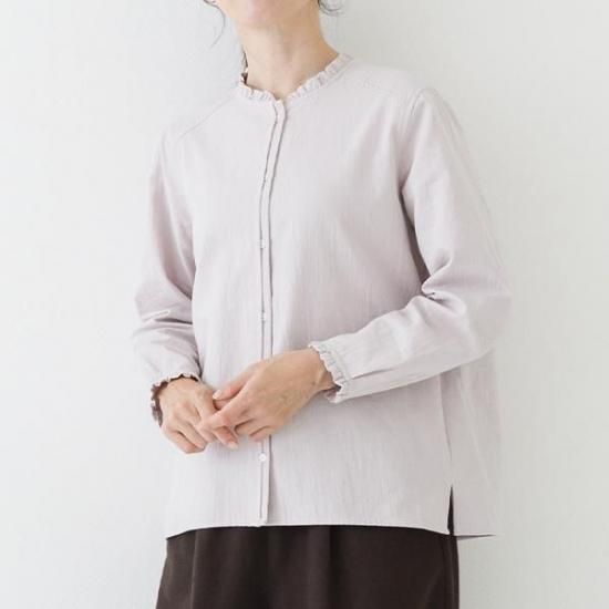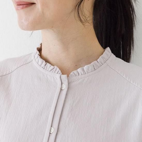 フリル襟と袖口が華やかな、コットン裏ガーゼ接結ブラウスです。