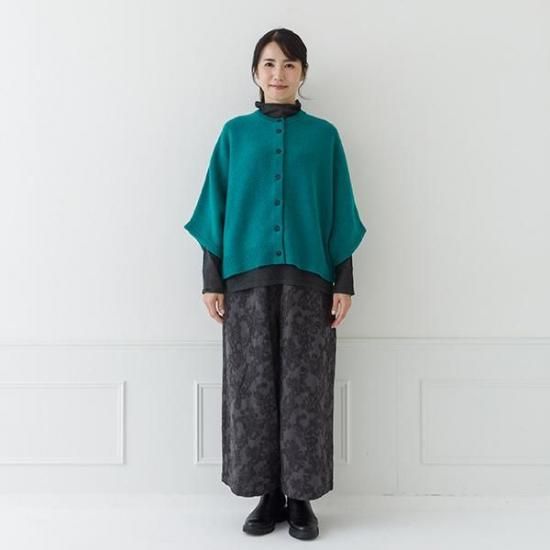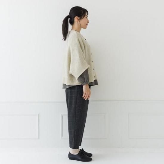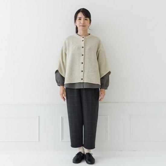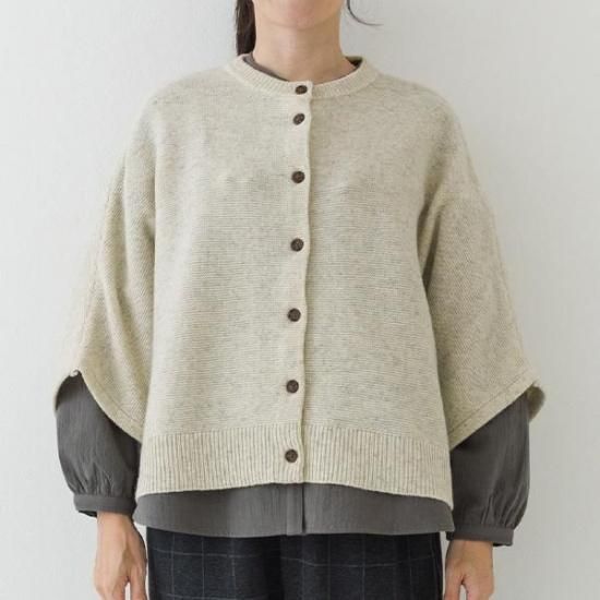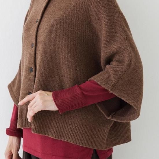 ・身頃と袖のガーター編みが豊かな表情を生み、羽織るだけで高見えする立体的なデザイン。