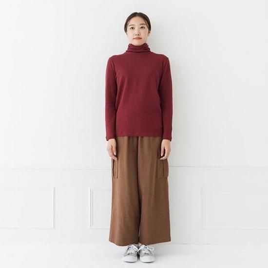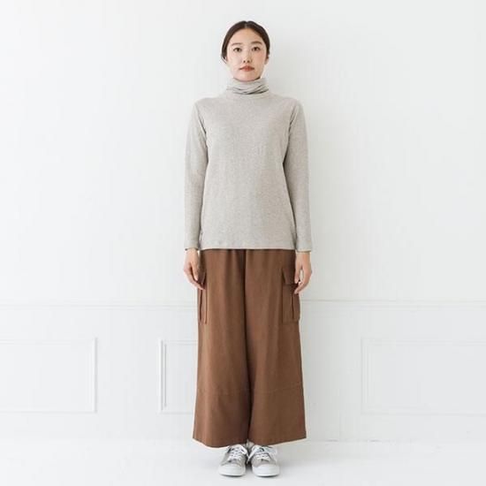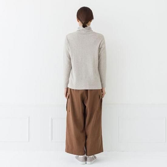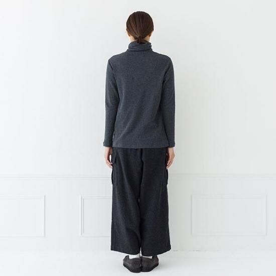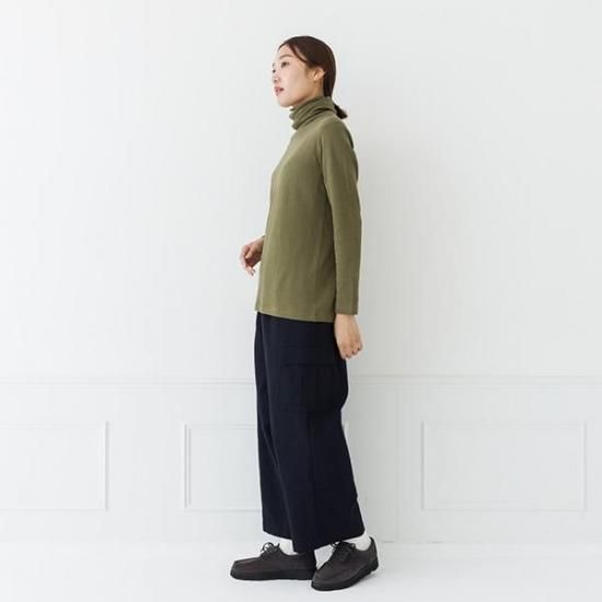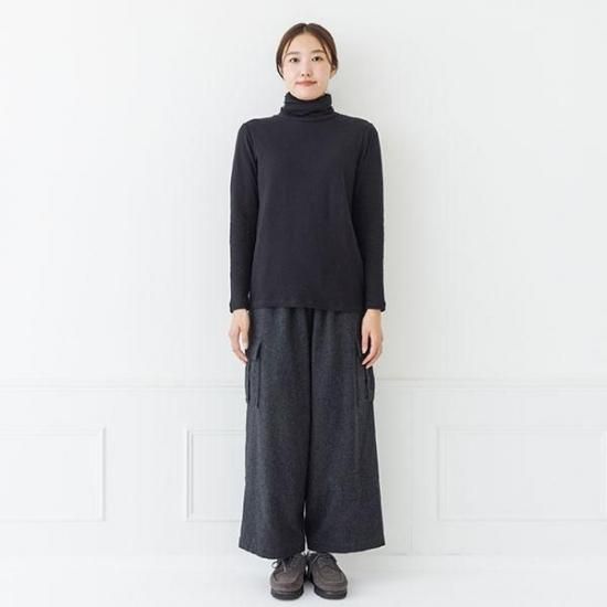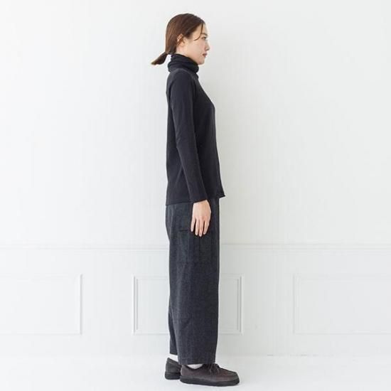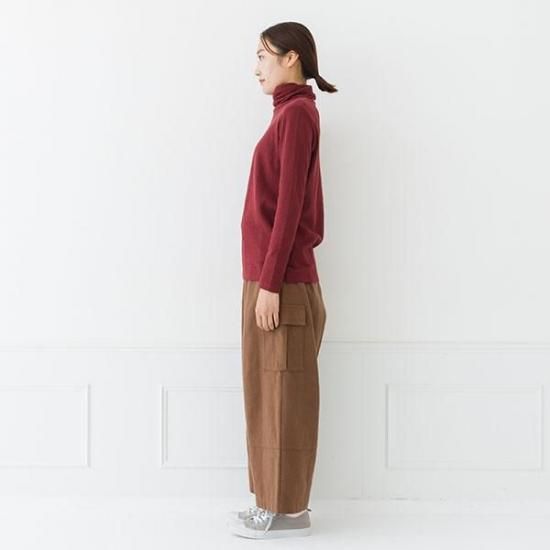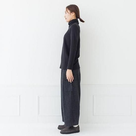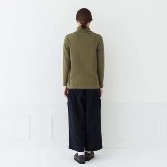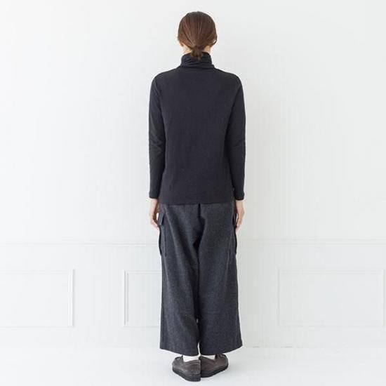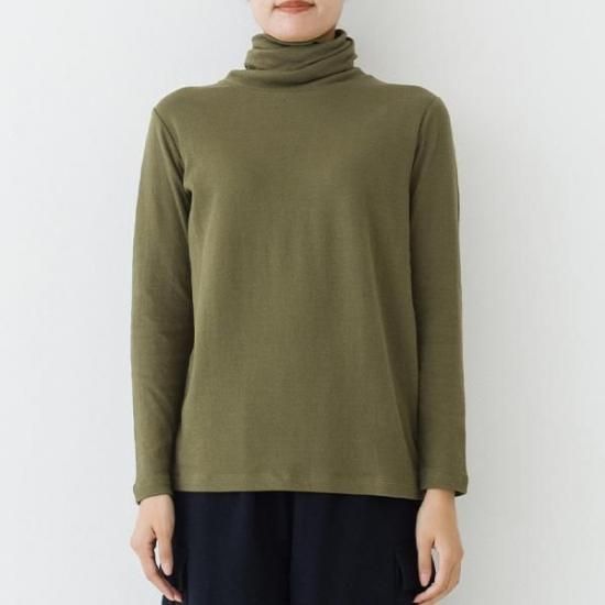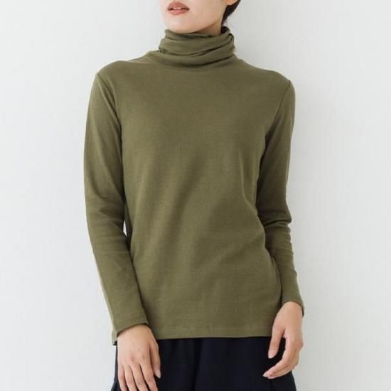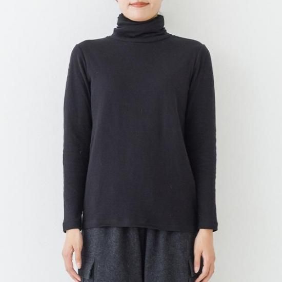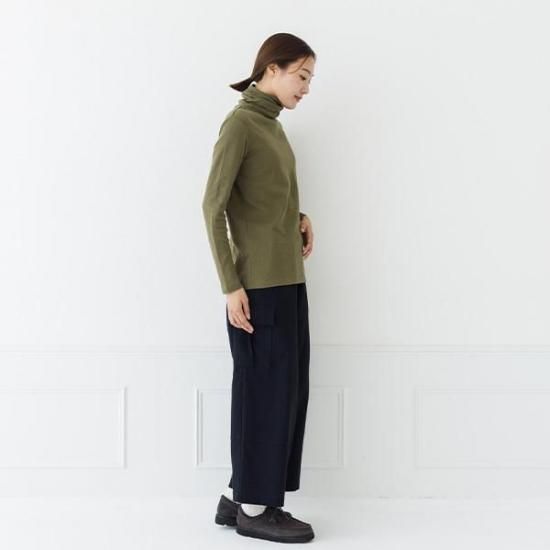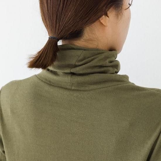 ・ねじりタートルネックが首元に優雅な自然なたるみを作り、締め付け感なく上品です。