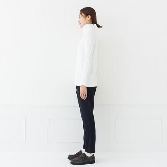 ・すっきりとしたストレートラインで、インナーとして重ね着してももたつかないフィット感です。