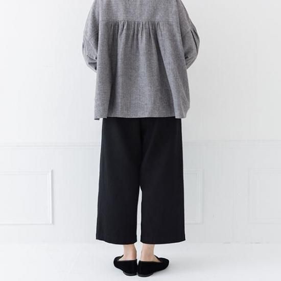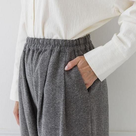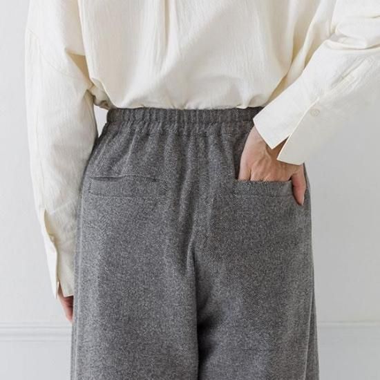 ・ウエストのギャザーとワイド幅の組み合わせが、穿くだけでこなれた大人のリラックススタイルを演出。