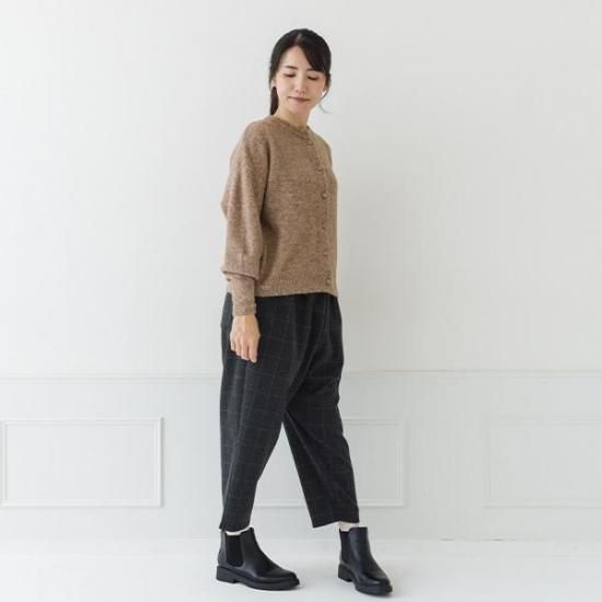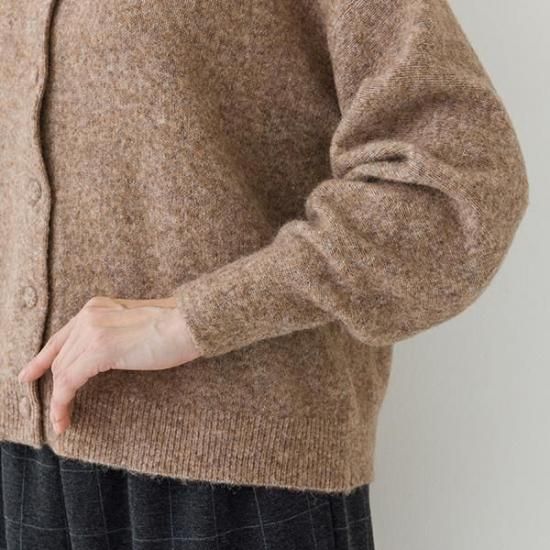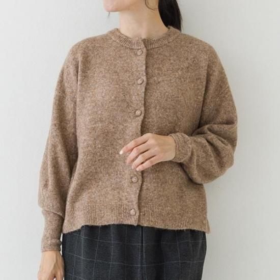 【Crea delice/クレアデリス】 キャメルニット くるみボタン パフスリーブ カーディガン