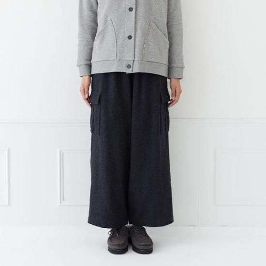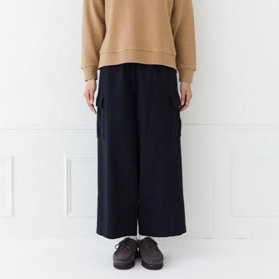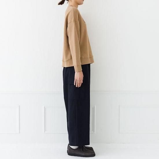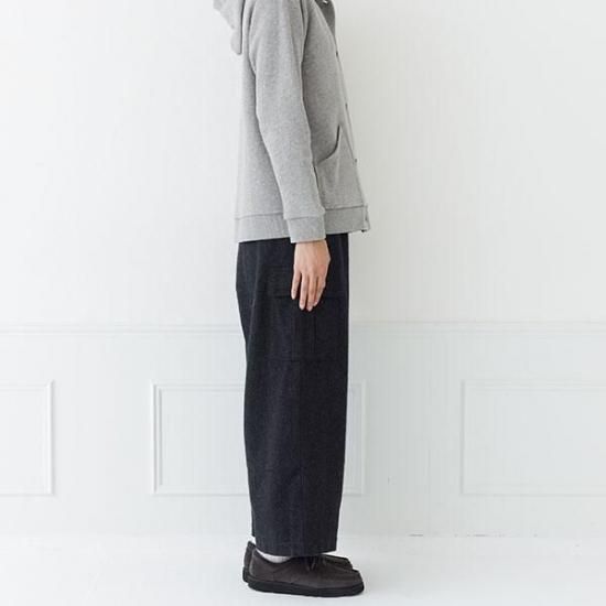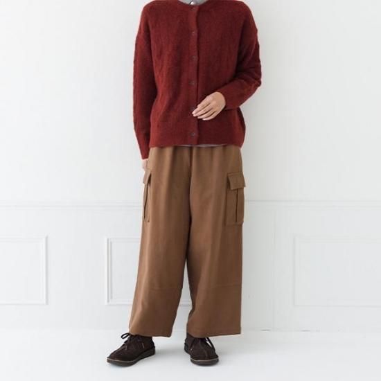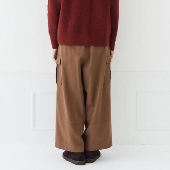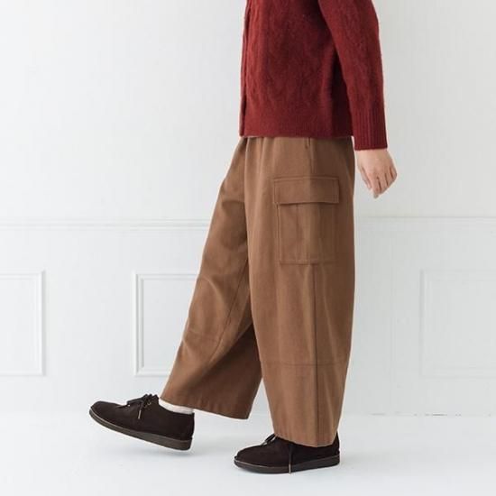・綾織のしっかりとした質感で、カーゴパンツのワイドシルエットを美しく保ちます。