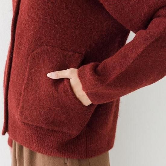 大きめポケットがアクセントの実用的な羽織りデザインです。