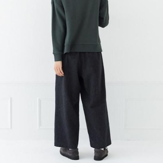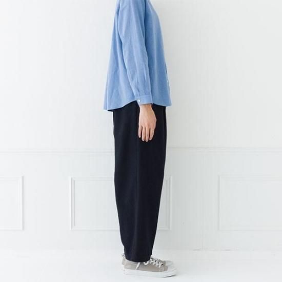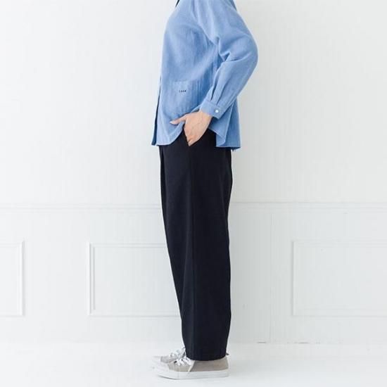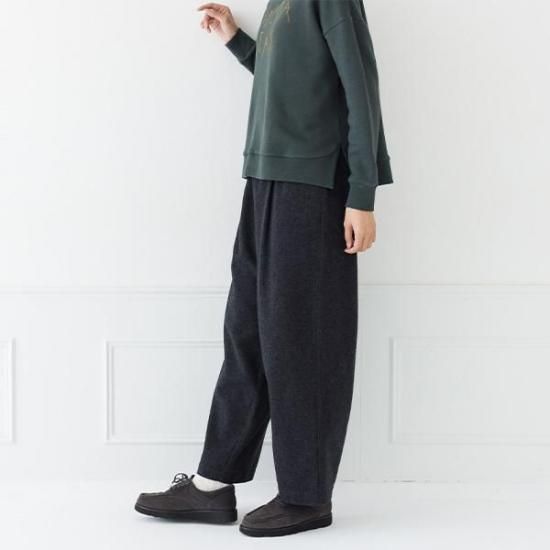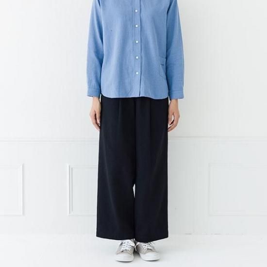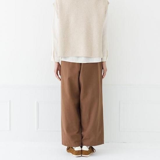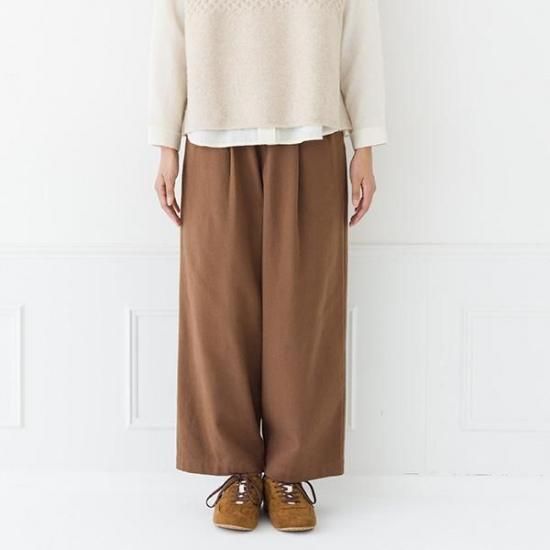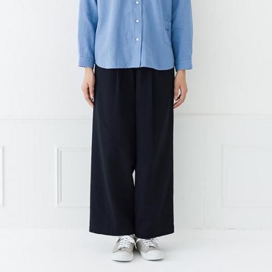 ・タック入りのワイドでストレートラインが、脚のラインを拾わず、すっきりと見せます。