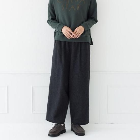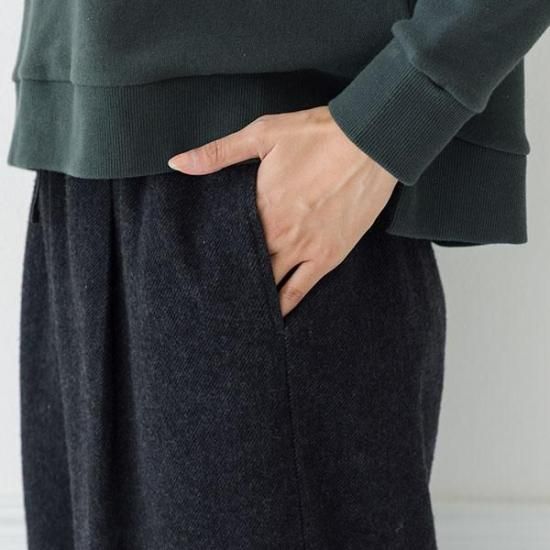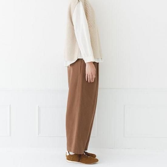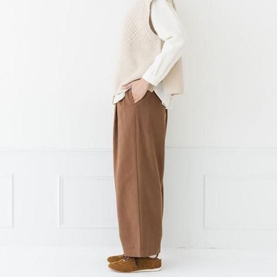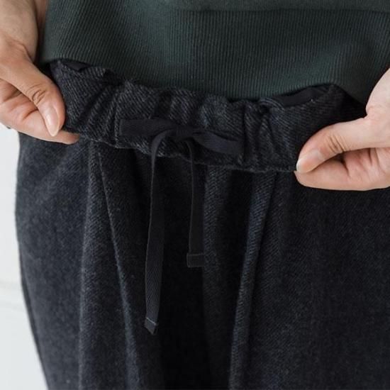 タックとストレートラインが上品。総ゴムで楽な履き心地ながら、