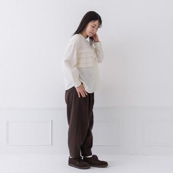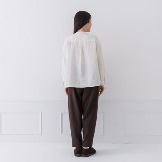 ・ざっくりとしたニットやベストの下に着て、バンドカラーとフリルを覗かせるレイヤードに。