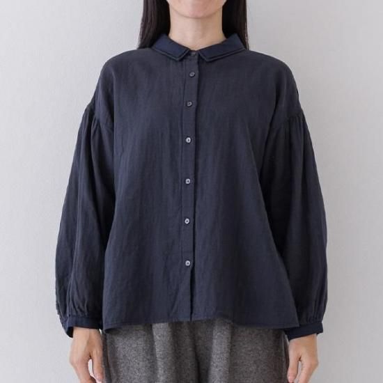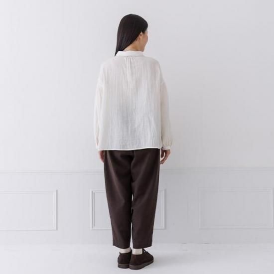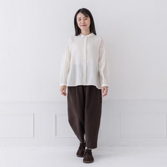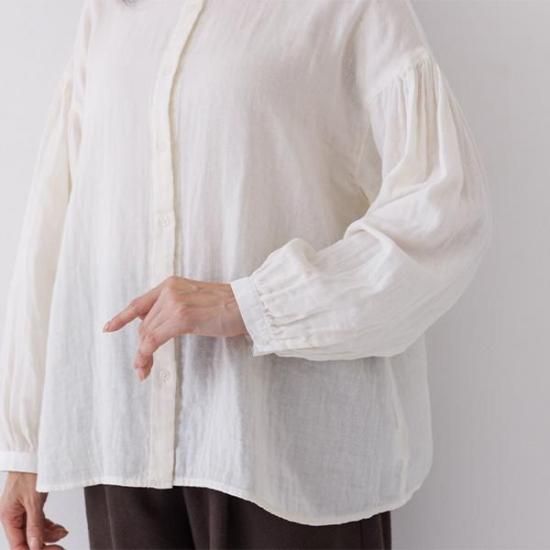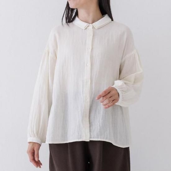 【Crea delice/クレアデリス】 コットン100% Wガーゼ 2枚襟ボリューム袖ブラウス