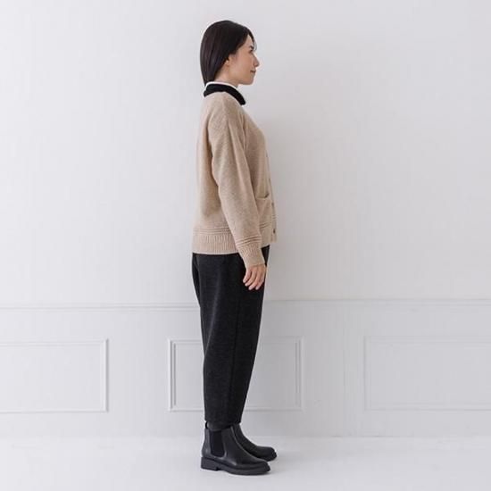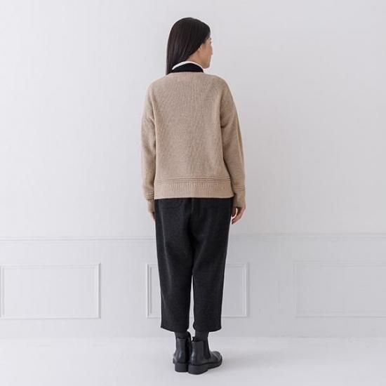 ・袖口と裾のリブに編み地の変化を加え、シンプルながらも細部までこだわったデザインです。