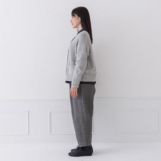 ・ボタンを全て閉じて、スカートやワイドパンツと合わせたクラシカルなプルオーバー風の着こなしに。