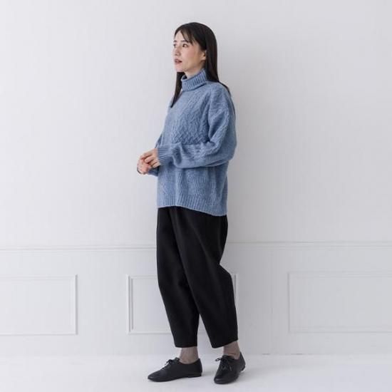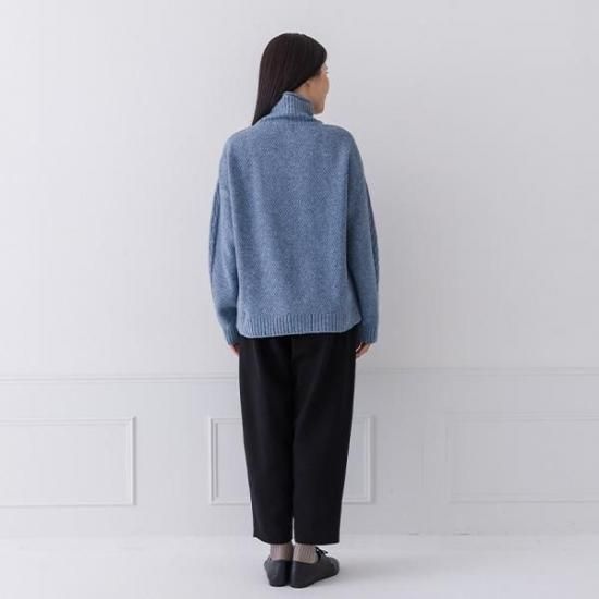 タムヤーンのふんわりとした質感が魅力のセーターです。ハイネックとオーバーサイズに、