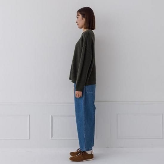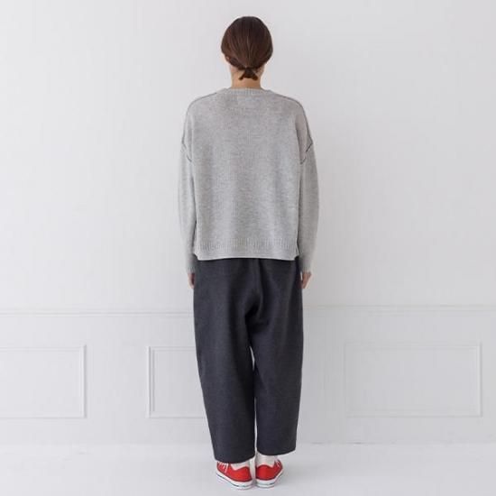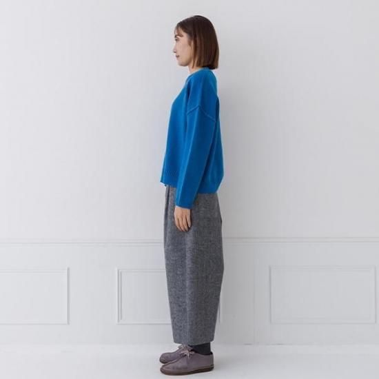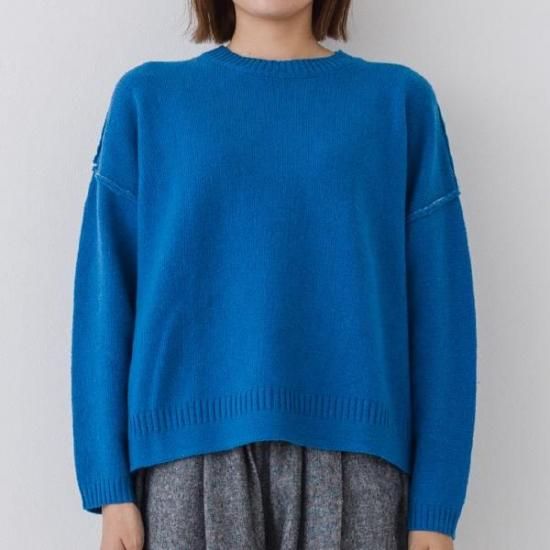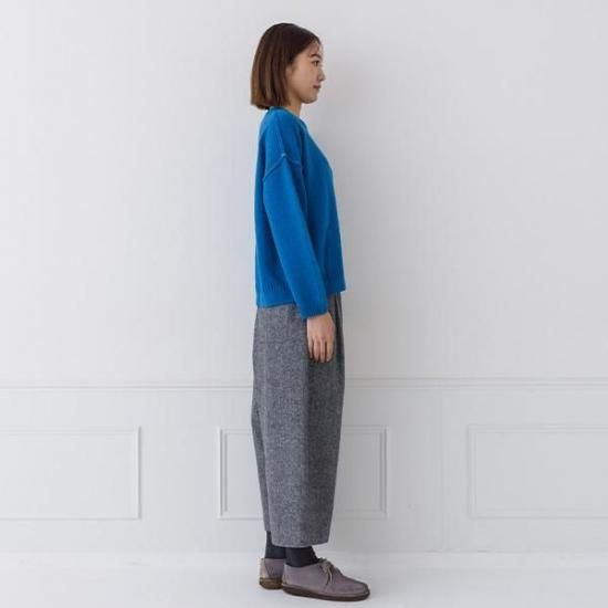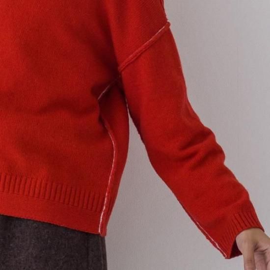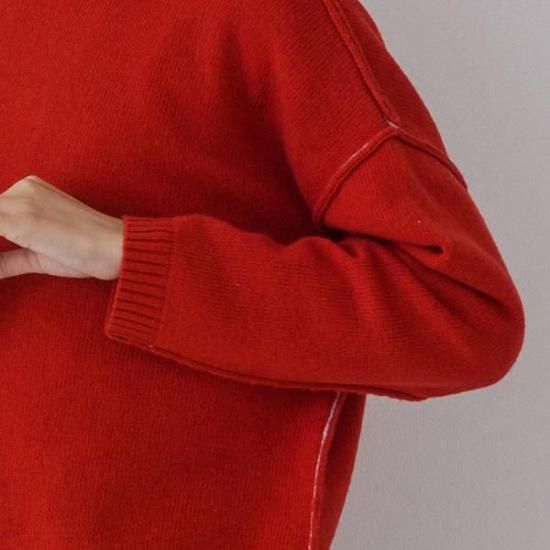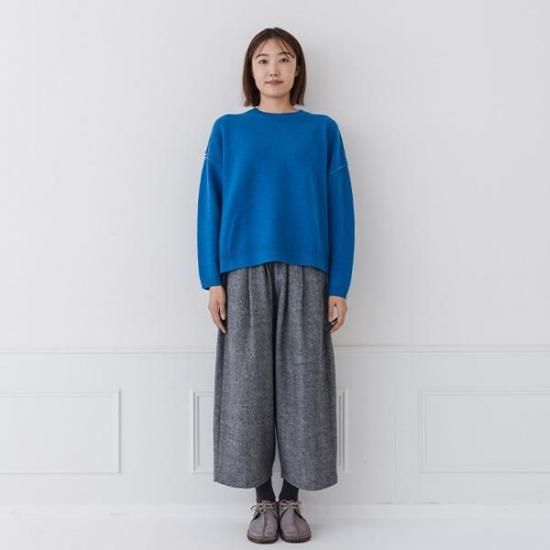 柔らかなラムウール混のワイドセーター。アームホールなどに白色の配色リンキングを施し、