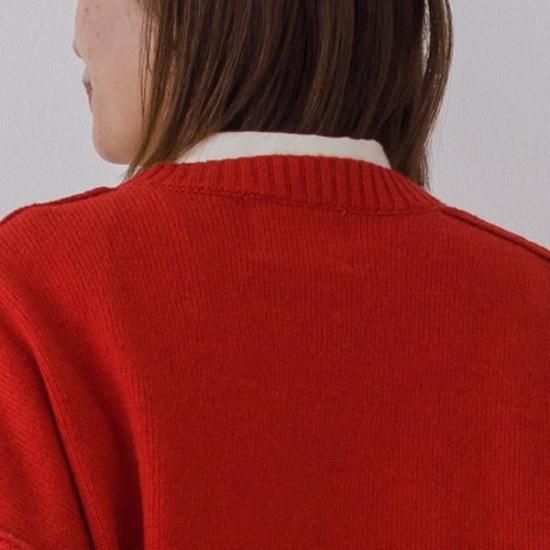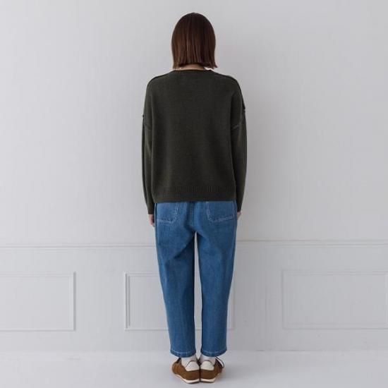 ・クルーネックのベーシックな首元に、遊び心あるディテールをプラスしています。
