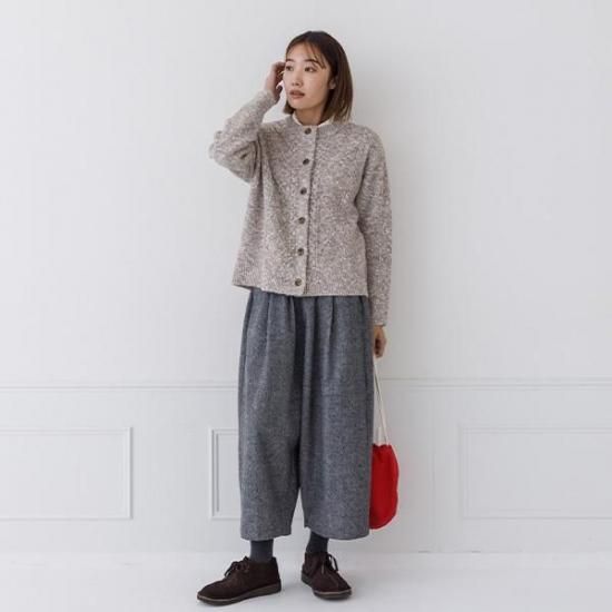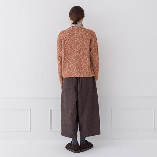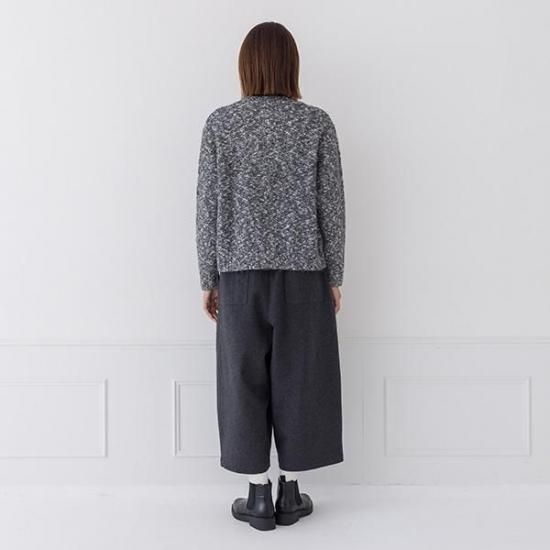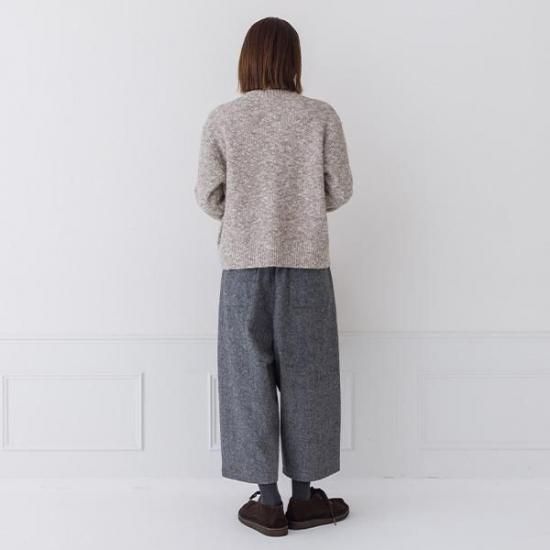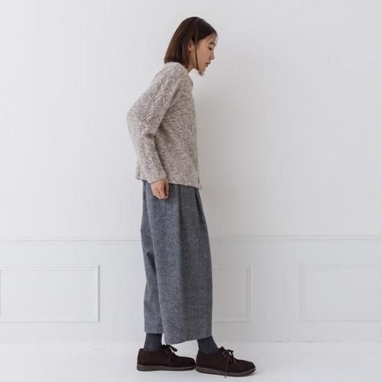 ・メランジの糸が、ケーブル編みと相まって奥行きのある豊かな表情を生み出します。