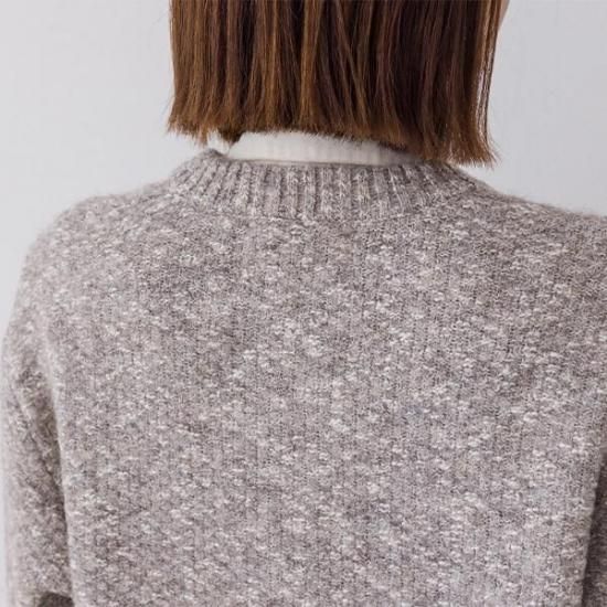 ・クルーネックが首元をすっきりと見せ、インナーを選ばず上品に着用できます。